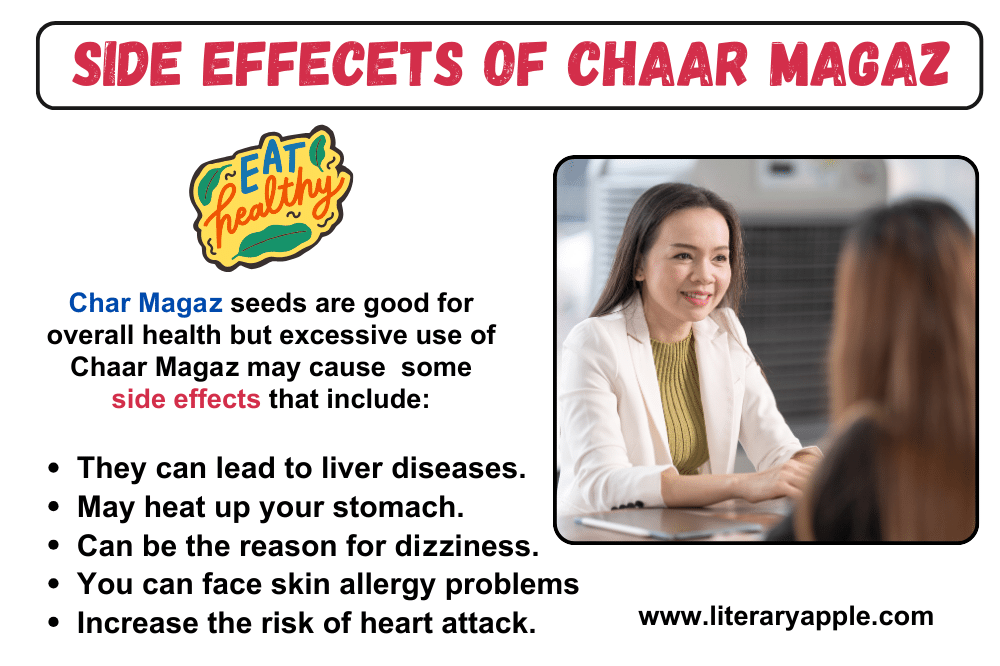 Never consume chaar magaz seeds in excess amounts it can be harmful to you. It may cause kidney, stomach, and many other infections. Magaz seeds consists of four types of seeds such as pumpkin, cucumber, watermelon, and rock melon.